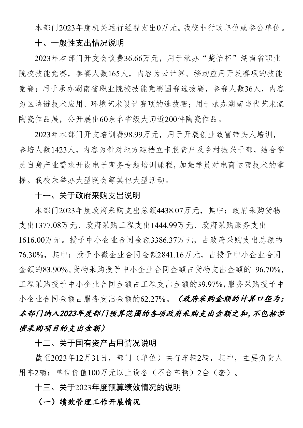 附件10:2023年度湖南科技职业学院整体支出绩效自评报告.pdf